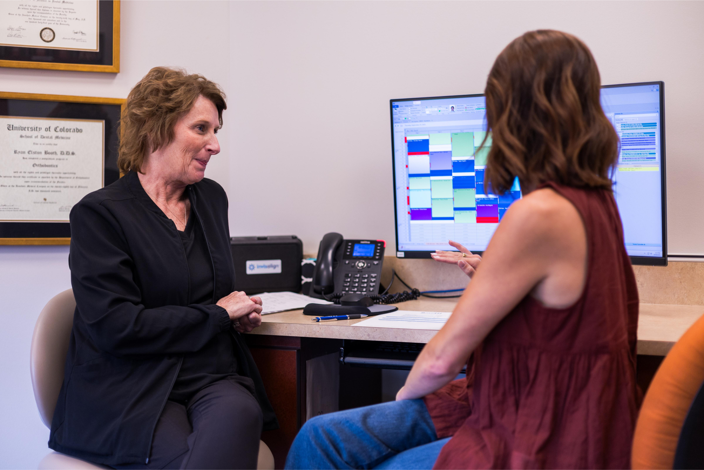 Book a free consultations in-office visit or choose a virtual free consult from the comfort of your home. During this visit, you'll meet with your orthodontist to discuss your concerns and goals. Most families tell us this first conversation puts them at ease right away.